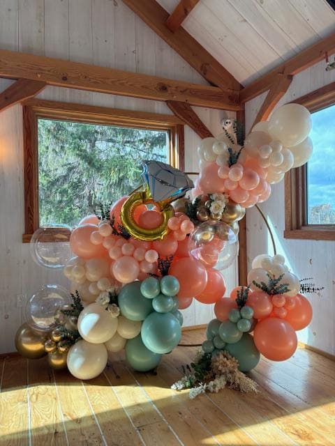 This Gold chrome balloon garland with clear bubbles was the perfect decor for a sophisticated 40th birthday party in Doylestown PA. Call or Text 215-801-2412 to book balloon decor for your upcoming celbration!