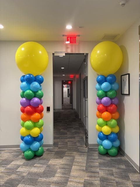 Pops of Color are a great add on. They are 4 for $140 and are great to put on lamp posts, stair cases, mailboxes, outdoor foyer columns etc. Call or Text 215-801-2412 to book balloons for your next party.