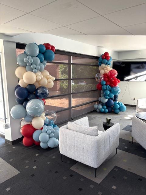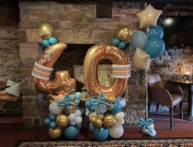 2/3 Balloon Ring with Helium Balloon Centerpieces for a 40th surprise party at The Black Bass Hotel in New Hope PA Call or Text Jessica to book your balloons! 215-801-2412