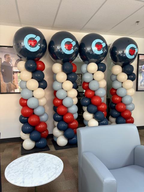 Traditional Balloon Columns with Bubble Toppers and Custom Logo ( or message) $270 for a set of two.