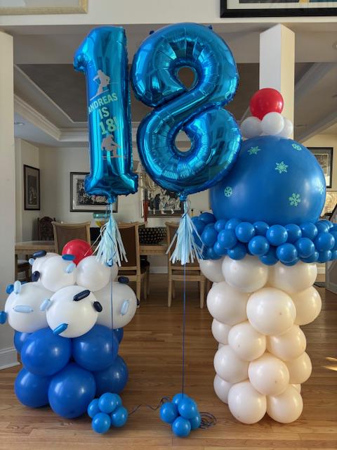 Cake, Ice Cream and Balloons. The absolute sweetest birthday balloon delivery! $295 comes with two helium jumbos (either double digit, or single digit with a special shape foil), a balloon sculpture cupcake and a jumbo ice cream cone balloon sculpture. BEST for indoors. ANY colors of course. Can be made for outdoors for an additional fee. Call or Text Jessica to order this super fun balloon delivery. 215-801-2412
