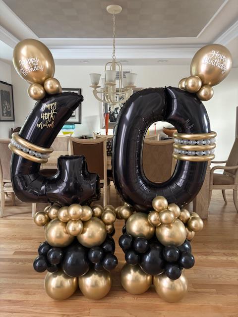 This is a Double Digit Theme Number Balloon Bouquet. $220.00 We can create most themes. People of all ages love this balloon bouquet. Call or Text Jessica at 215-801-2412. Let's send a custom gift for you today!
