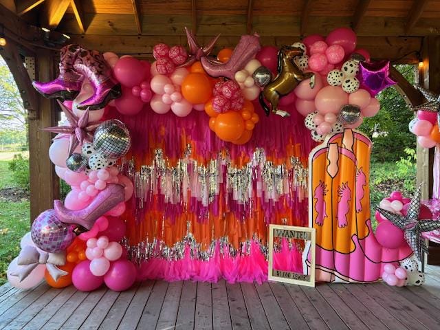 This Rainbow Fringe Backdrop with 4 Foot Balloon Garland is such an adorable focal point for any celebration. $325 to rent this rainbow fringe backdrop wall with a four foot balloon garland. Call or Text Jessica to book this adorable rental. 215-801-2412