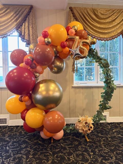 This comes in many colors! Whatever you like. Call Jessica at 215-801-2412 with more questions or to book this installation. Greens are the same- eucalyptus leaves. Comes with free delivery and installation and removal within 15 miles of 18977. Additional mileage is $4 per mile. If more items are needed, and we need to rent a larger vehicle for your party, there may be additional fees up to $250.00 but this will be discussed prior to booking. This ring is 5 feet high and wide. With balloons will be about 5 feet. Perfect for bridal showers, weddings, baby showers and birthdays.