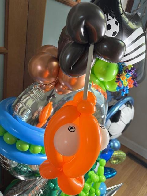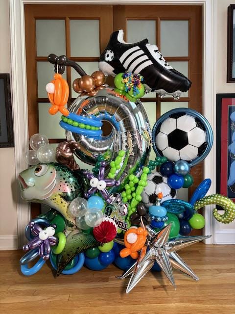 This Big Crazy Balloon Bouquet can be made with almost any theme. Comes with foil balloons, latex balloons and twisting balloon decor. Call or Text Jessica at 215-801-2412 to order yours today. Great for birthdays! Includes delivery within 15 miles of 18977 (Washington Crossing PA)